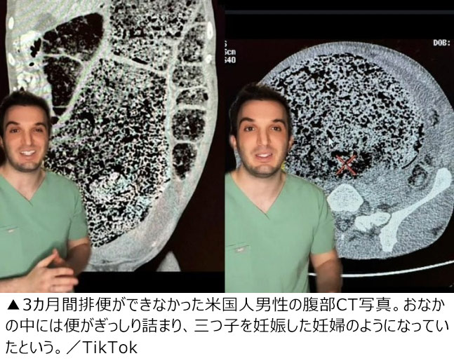 3カ月お通じがない米国人男性、妊婦のように膨らんだお腹をCTスキャン(2/2)