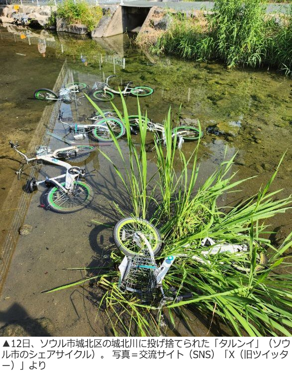 川に投げ捨てられたシェアサイクル、四日間で24台…同一人物の犯行か /ソウル(2/2)