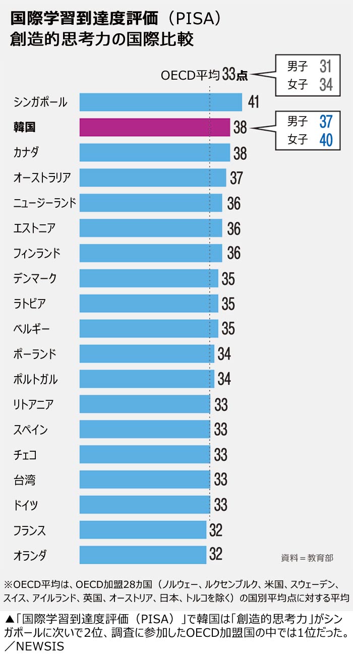 韓国の生徒、「創造的思考力」は世界2位・「自信」は平均以下=国際学習到達度評価(2/2)