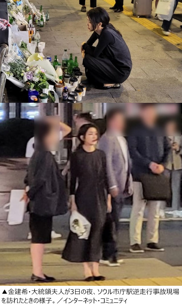 金建希夫人がソウル市庁駅逆走事故現場で献花(2/2)