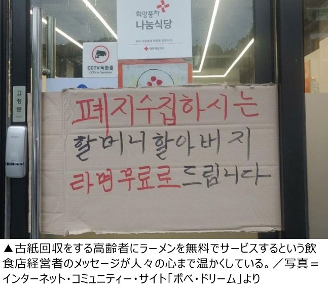 古紙回収で生計を立てているお年寄り向けにラーメン無料サービス…韓国ネット民「この店にお金を払いに行こう」(2/2)