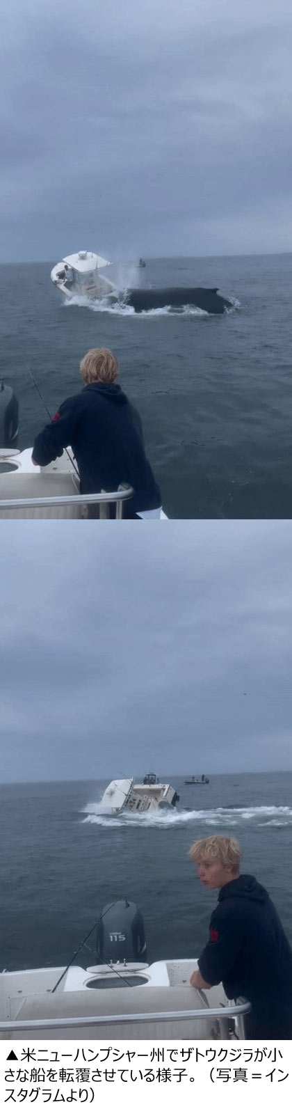ザトウクジラが小型船にダイブ、転覆で投げ出された2人無事救助 /米ニューハンプシャー州(2/2)