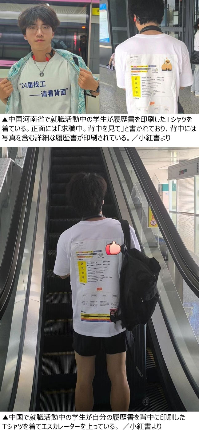 履歴書記載Tシャツを着て街を歩く中国の青年たち(2/2)