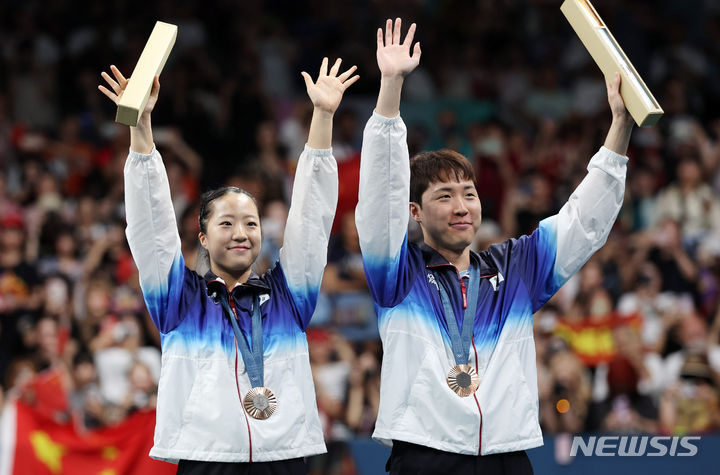 卓球混合ダブルス授賞式で南北が記念ショット パリ五輪(6/16)