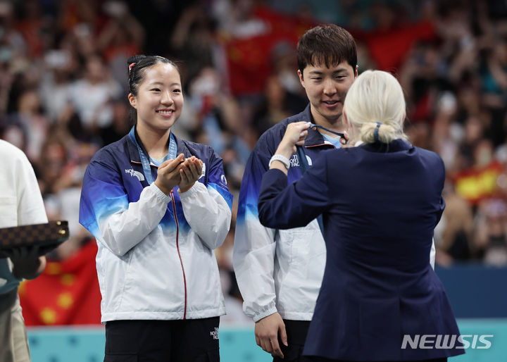 卓球混合ダブルス授賞式で南北が記念ショット パリ五輪(10/16)