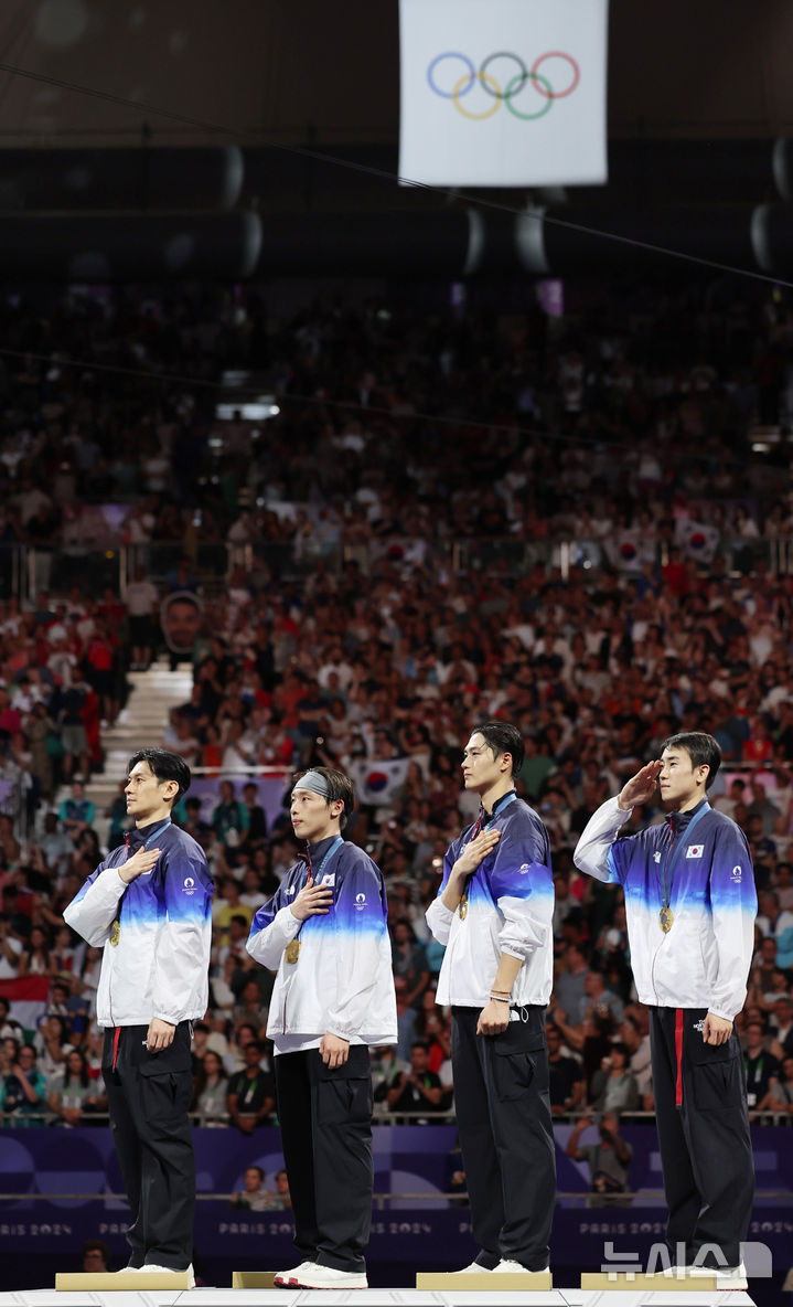 韓国「3連覇達成」 フェンシング男子サーブル団体で パリ五輪(19/24)