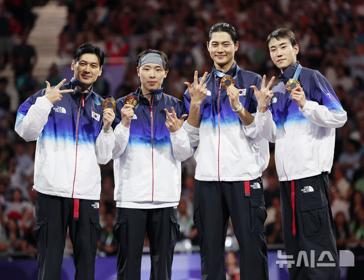 韓国「3連覇達成」 フェンシング男子サーブル団体で パリ五輪(22/24)