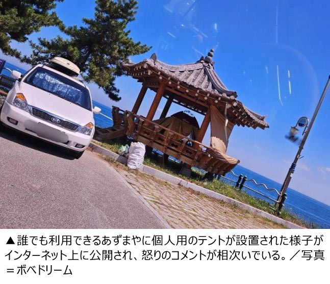 「あなたのものなの?」 公共あずまやにテントや日よけを設置した利用者に批判殺到 /慶北・盈徳郡(2/2)