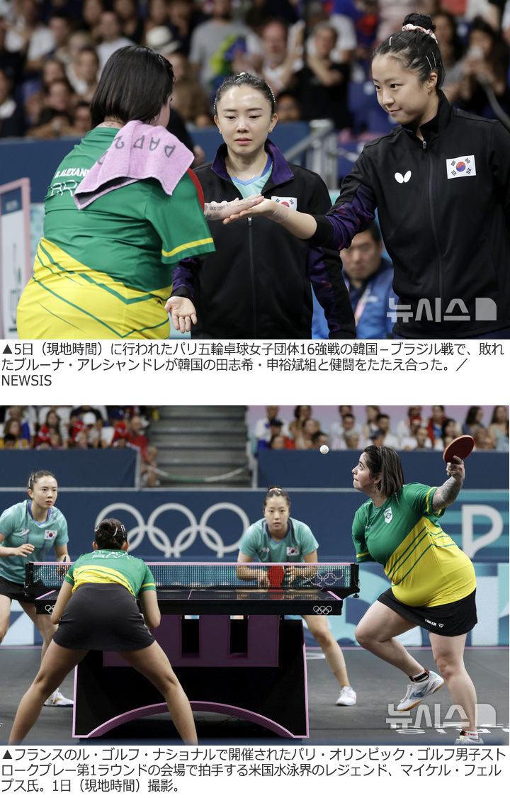 卓球女子団体 韓国代表と対戦して敗れた隻腕のブラジル代表選手に大きな拍手と歓声 パリ五輪(2/2)