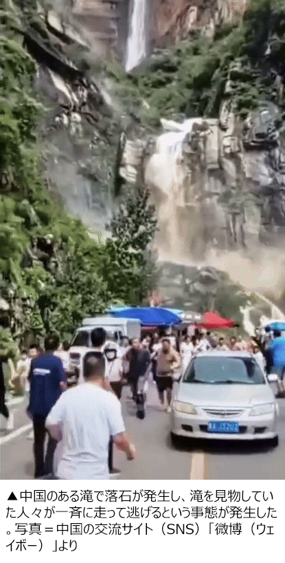 「パニック映画ではありません」 中国・河南省の滝で落石発生、見物客が逃げ出す騒ぎ(2/2)