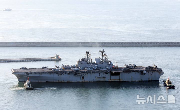 米海軍の強襲揚陸艦アメリカ&ドック型揚陸艦コムストックが釜山に寄港(6/7)