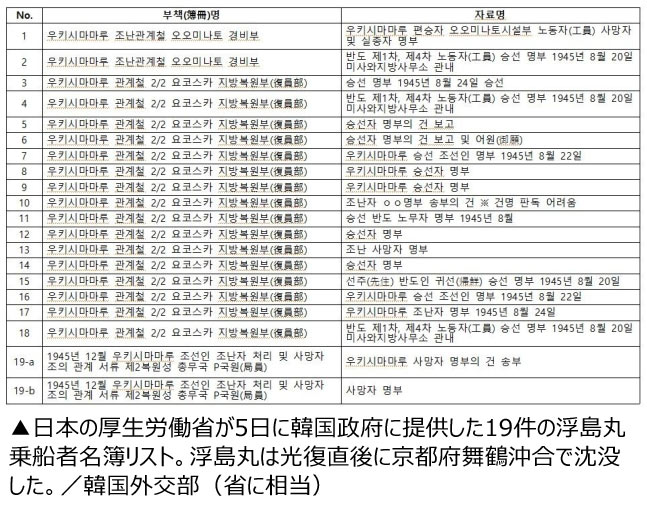 日本政府、79年間隠蔽してきた浮島丸乗船者名簿の一部を韓国政府に提供(2/2)
