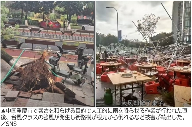 中国で人工降雨直後に台風クラスの暴風発生、倒木・バイク転倒・窓ガラス飛散…SNSで被害報告続出(2/2)