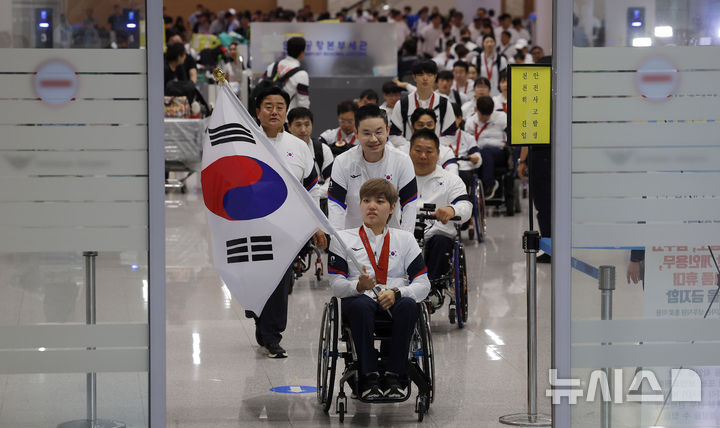 太極旗手に帰国したパリパラリンピック韓国選手団 /仁川(3/11)