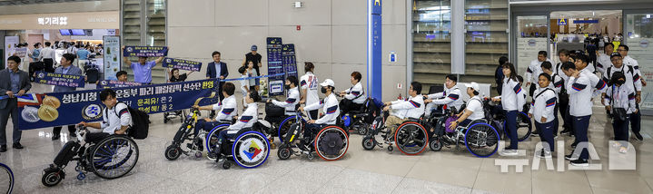 太極旗手に帰国したパリパラリンピック韓国選手団 /仁川(7/11)
