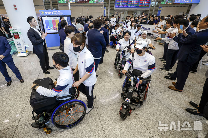 太極旗手に帰国したパリパラリンピック韓国選手団 /仁川(8/11)