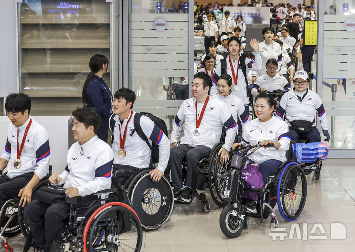 太極旗手に帰国したパリパラリンピック韓国選手団 /仁川(10/11)