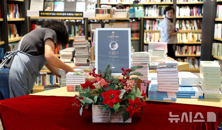 韓国人初のノーベル文学賞受賞を受け、にぎわう済州の書店(7/9)