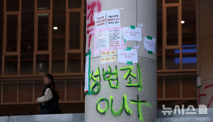 ソウル女子大の学生、性犯罪の教授を糾弾して「ラッカー落書きデモ」(7/15)