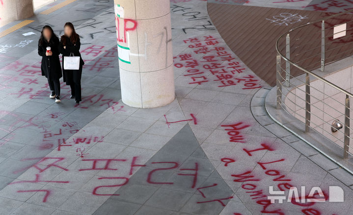 ソウル女子大の学生、性犯罪の教授を糾弾して「ラッカー落書きデモ」(10/15)