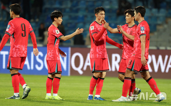 サッカー:パレスチナと引き分けた韓国代表チーム=W杯アジア最終予選(3/11)