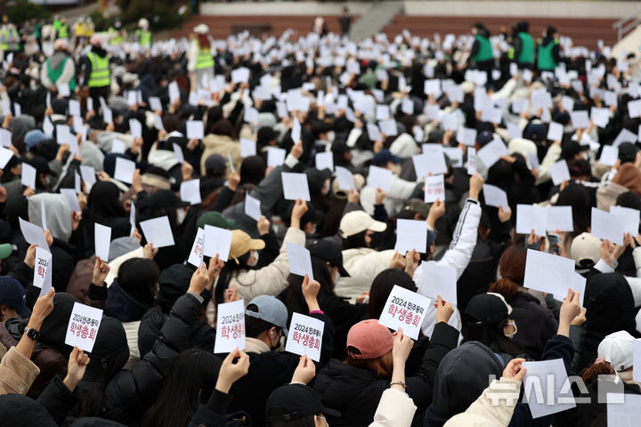 男女共学転換への反対意見を主張する同徳女子大の学生たち(4/10)