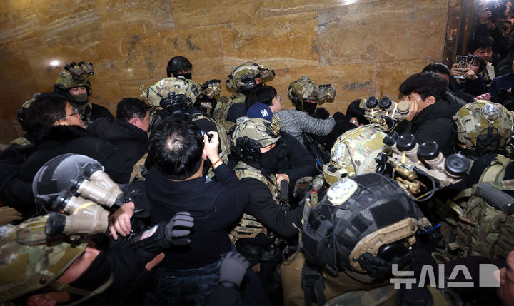 衝突する戒厳軍と国会補佐陣 /ソウル(5/9)
