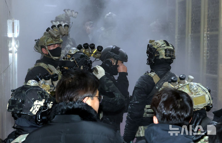 衝突する戒厳軍と国会補佐陣 /ソウル(7/9)