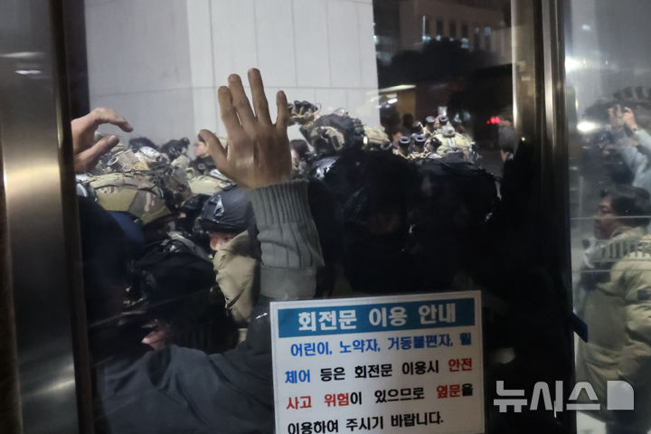 衝突する戒厳軍と国会補佐陣 /ソウル(8/9)