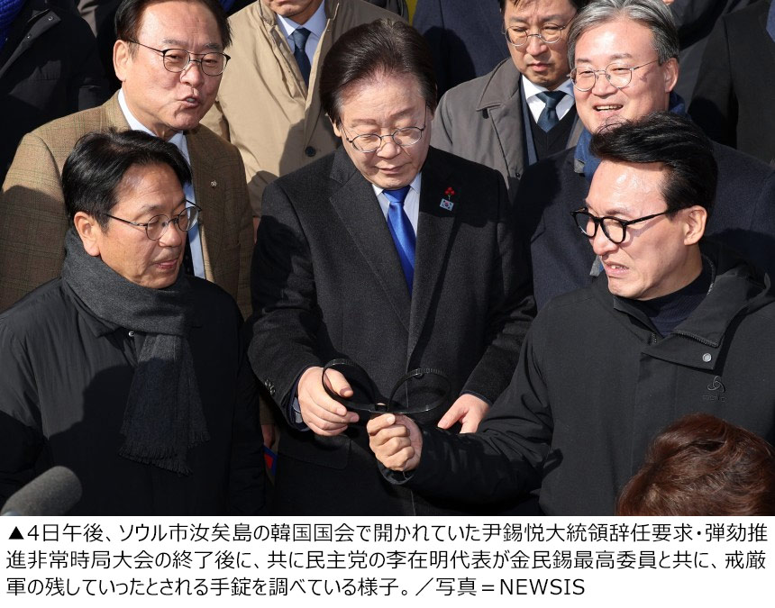 狙いは韓東勲・李在明両代表の逮捕だった? 戒厳軍が現場に落としていった手錠が話題に(2/2)