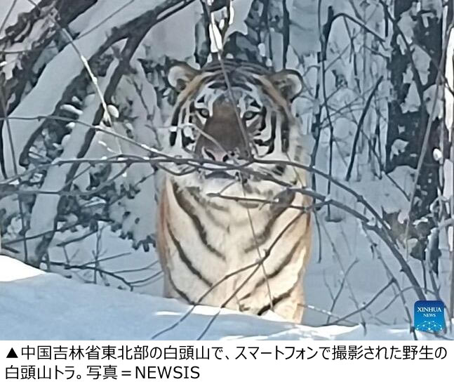 雪が積もった白頭山に野生の「白頭山トラ」現る…30年ぶりに撮影(2/2)