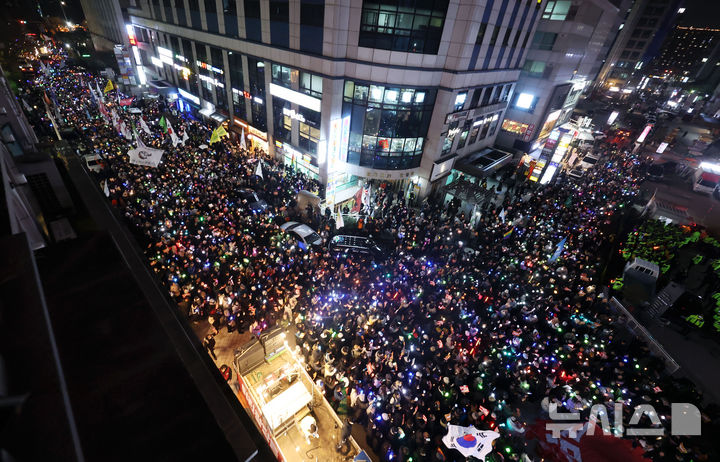 韓国与党・国民の力党本部を取り囲むろうそくデモの参加者たち /ソウル(7/10)