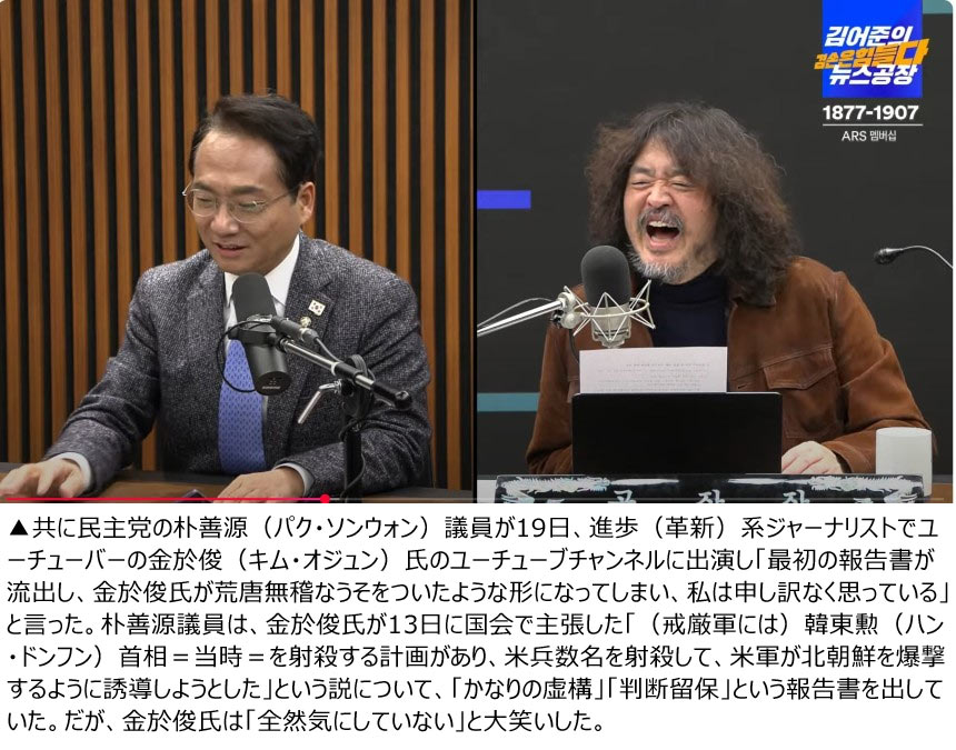 「国会参考人・金於俊氏の『韓東勲暗殺班』説はうそ」と結論 報告書を作成した共に民主・朴善源議員が金於俊氏の番組で謝罪(2/2)