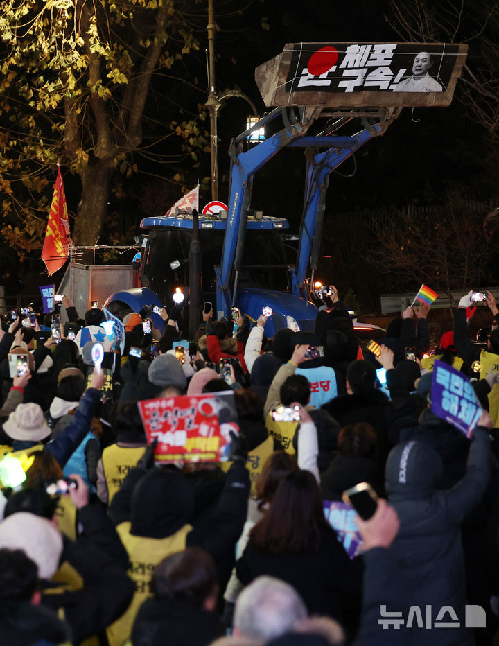 市民の歓声浴び韓国大統領官邸に向かうトラクター /ソウル(3/5)