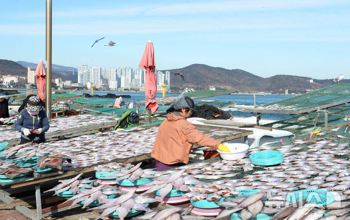 カレイの乾燥作業を行う漁業関係者(4/10)