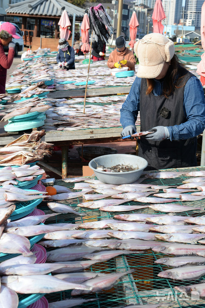 カレイの乾燥作業を行う漁業関係者(9/10)