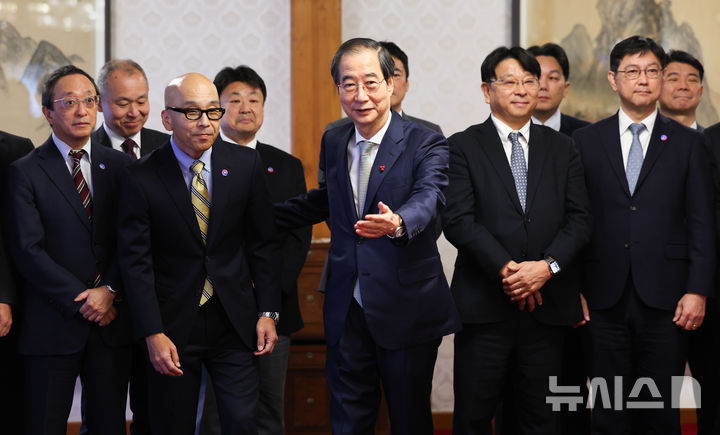 駐韓日本商工会議所の昼食懇談会で発言する韓悳洙・大統領権限代行(6/12)