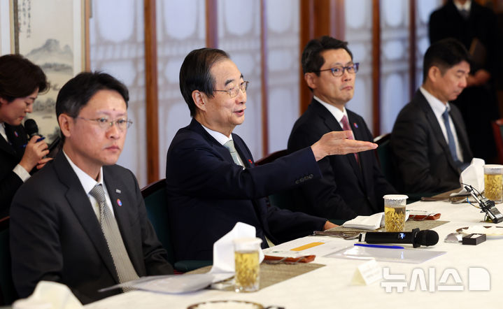 駐韓日本商工会議所の昼食懇談会で発言する韓悳洙・大統領権限代行(9/12)