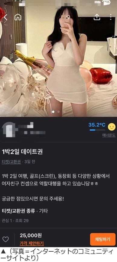 「1泊2日で彼女代行します」 韓国のフリマサイトにデートサービス出品…きわどい写真も(2/2)