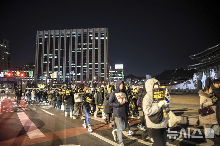 ソウル政府庁舎近くで「韓権限代行退陣」求めるロウソクデモ(12/15)
