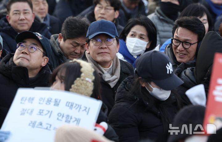 戒厳事態の後、初の場外集会に参加した李在明代表(1/12)