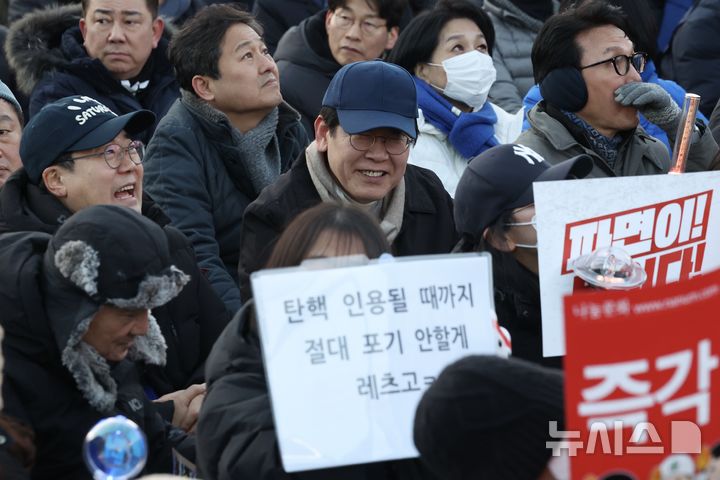 戒厳事態の後、初の場外集会に参加した李在明代表(12/12)