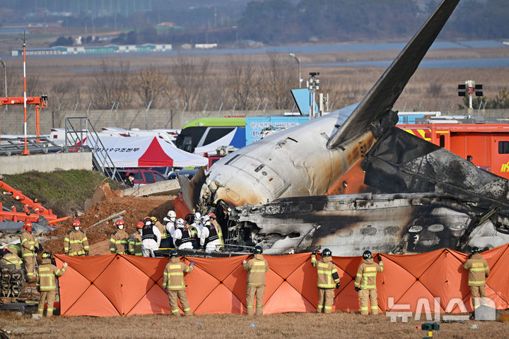 チェジュ航空機事故 搭乗者の遺体を収容する消防隊員たち /全羅南道(4/5)