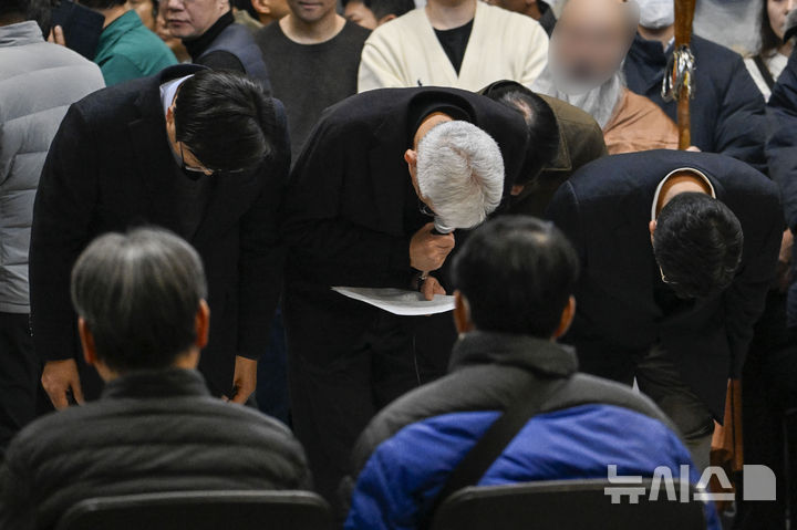 遺族に謝罪するチェジュ航空の金二培代表と経営陣 /全羅南道(8/10)