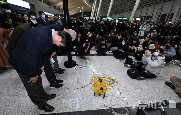 遺族に謝罪するチェジュ航空の金二培代表と経営陣 /全羅南道(10/10)