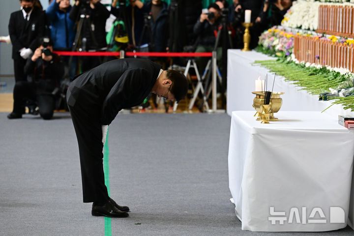 旅客機事故の合同焼香所を弔問する禹元植国会議長(2/2)