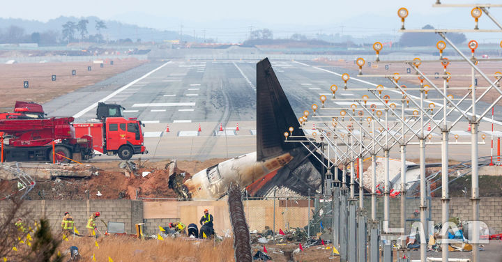 務安空港の滑走路に残された事故機の残骸 /全羅南道(2/6)