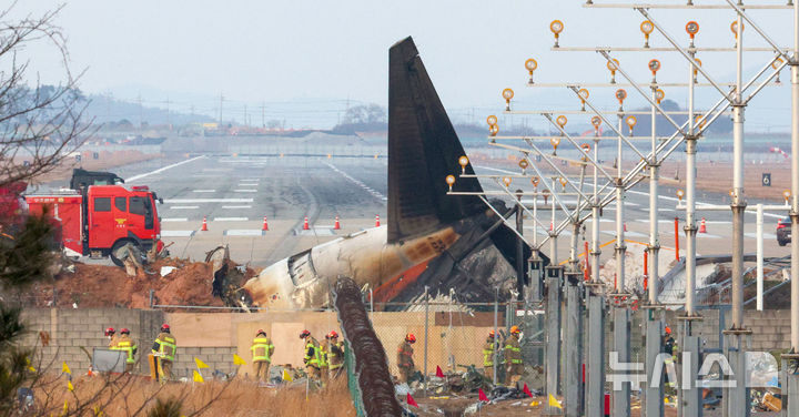 務安空港の滑走路に残された事故機の残骸 /全羅南道(3/6)