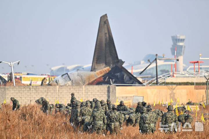 チェジュ航空機事故から五日…遺留品を捜索する韓国軍・警察 /全羅南道(2/12)