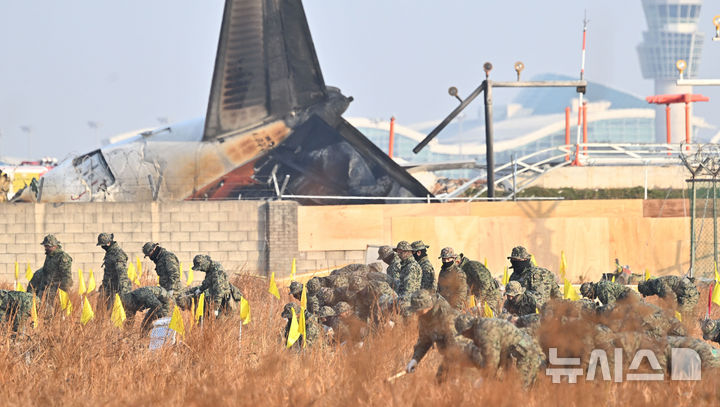 チェジュ航空機事故から五日…遺留品を捜索する韓国軍・警察 /全羅南道(3/12)
